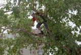 Удаление дерева по частям. Если стесненные условия не позволяют удалить дерево целиком, дерево удаляется по частям. С помощью автовышки или с применением метода